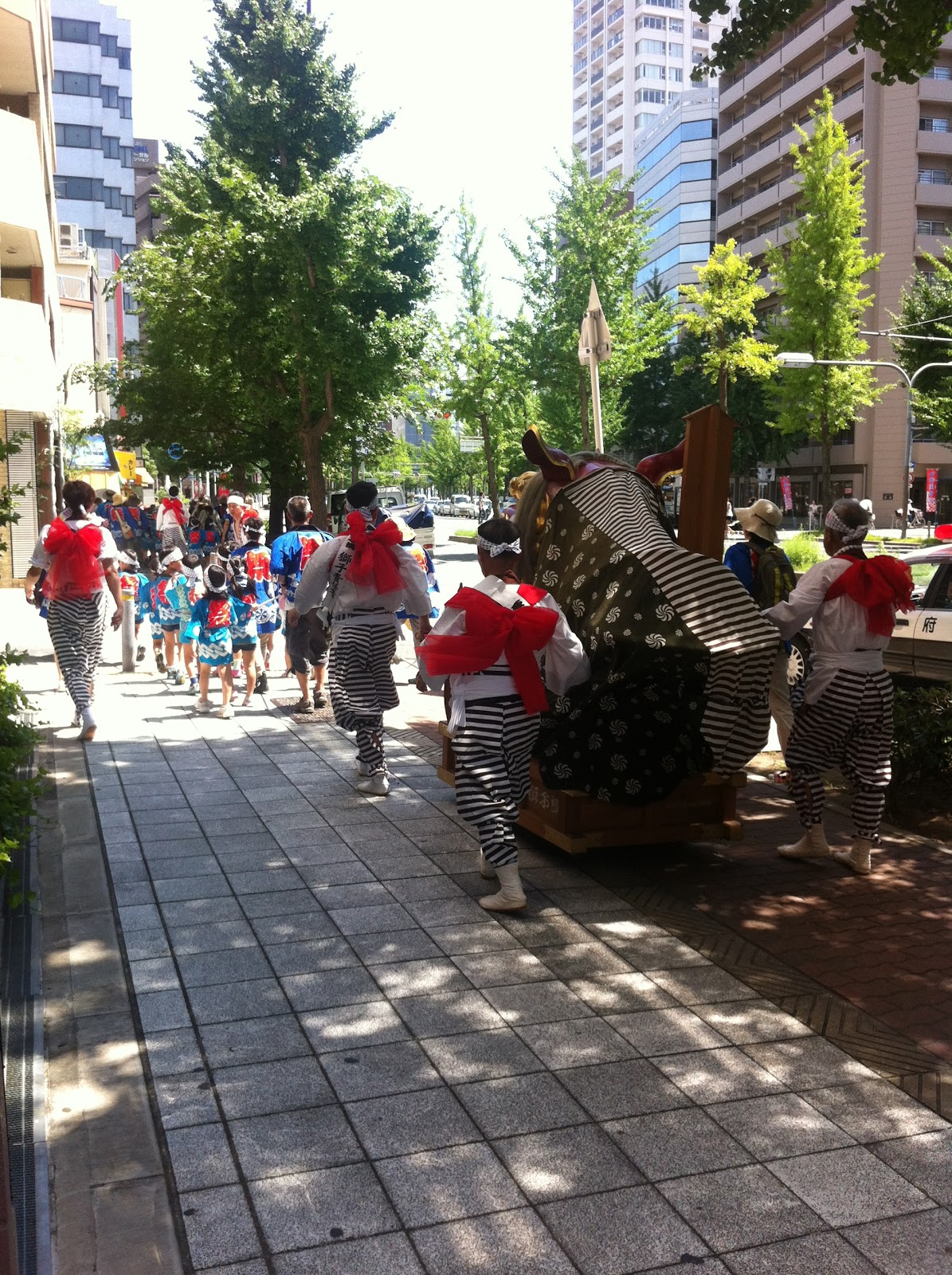 中にはうな垂れている子もいましたが、炎天下の中をみんな一生懸命行進してました。
