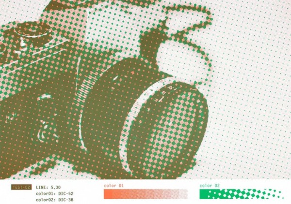 そして、網点形状は丸い形のドットだけと思いきや、スクエア、菱形、楕円、六角形、ライン等を選ぶことができます!版の出力機に備わっているこの機能、何に使うのかわからないのが正直なところですが(笑)、どんなものに仕上がるのか実験してみました。