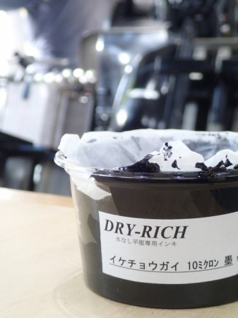 弊社でも初めての試みだったのですが、この斬新な取り組みに賛同しチャレンジしてみることに。紙は貝殻の粉のせいか給紙がなかなかうまくいかず、インクも硬めで乗りにくい部分もあったのですが、何とか無事に仕上げることができました。