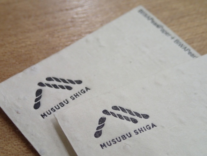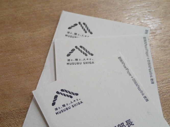 そこでこの度開発された、ビワパールの母貝であるイケチョウ貝の貝殻を砕いて練り込んだ「紙」「インク」を使い、名刺を活版印刷するご依頼をいただきました。